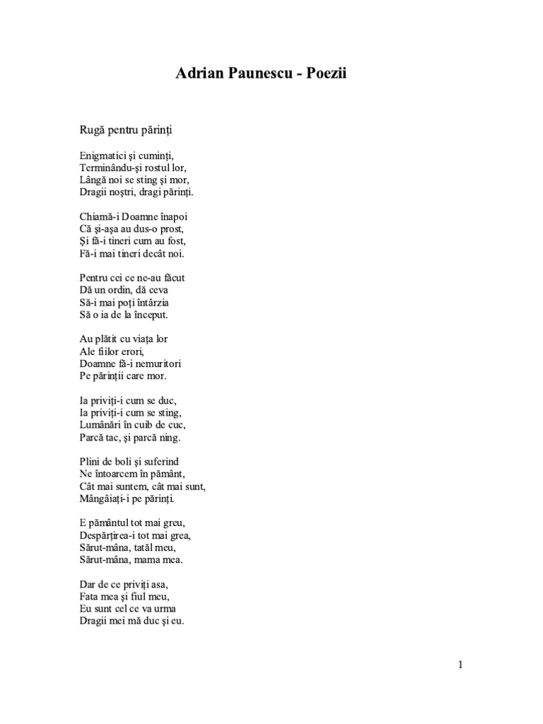Adrian paunescu ultima poezie 1. Dragii noştri dragi părinţi. - Ruga pentru parinti.